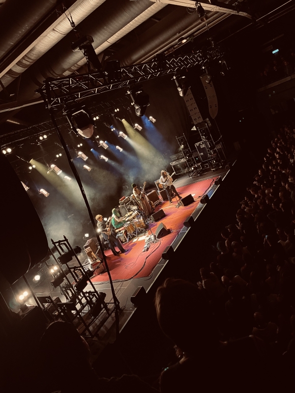 Eine Band, die ihre No-Bullshit-Tightness auch durch ihr proberaum-esques Setup auf der großen Bühne der Columbiahalle verdeutlicht: kein Backdrop im Hintergrund, nur ein Teppich auf dem Boden, sehr eng nebeneinander stehende Mitglieder und quasi null Ansagen oder irgendwelche Konzessionen an einen wie auch immer gearteten Stadionrock. Da aber die Songs stark genug sind und die musikalischen Fertigkeiten wirklich für sich sprechen, vermeiden Big Thief dennoch jedes Authentizitätsgehubere, sondern nimmt man ihnen diese 1:1-Haftigkeit immer vollends ab.