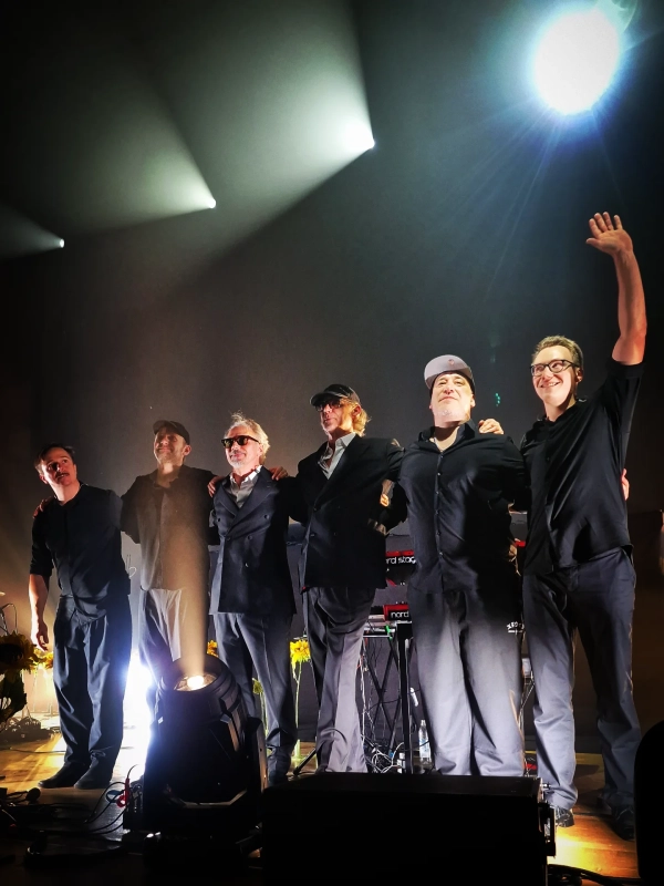 Die Band spielt gekonnt auf und schafft es so, die Stücke von den Alben so umzusetzen, wie es Kruder & Dorfmeister selbst nicht für möglich gehalten hätten ("Zu viele Samples, zu viel Studio Magic"), folglich werden sie am Ende des regulären Sets nochmal einzeln vorgestellt und mit kennerhaftem Applaus bedacht. Ganz ehrlich: Mir war es stellenweise zu viel Muckertum und Show-Off. So schön wie es ist Drum&Bass im Wortsinn zu live zu hören, vermisse ich den Motorik-Beat und das reduzierte Spiel von Könnern, die ihre Anteile nur in den Dienst der Sache stellen. Über Mark E. Smiths Großmutter an den Bongos müssen wir kein Wort verlieren, alleine der Anblick dieses Instruments auf der Bühne verschlug uns schon den Atem und die Darbietung wurde ja mit am Rand des Bewusstseins befindlichem Jubeln und Pfeifen und dem unausgesprochenen "Geil, so geil würde ich auch gerne Bongos können." vom Auditorium bestraft. Richard Dorfmeister an der Querflöte verdient aber mein Lob und erzeugte warme Florian-Schneider-Gefühle im Nierenbereich.