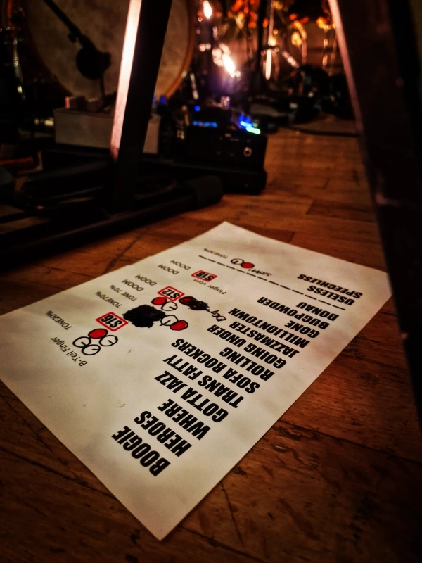 Nach und nach kommt die Band auf die Bühne (4 Musiker, Bass/Drums/Tasten/Bongos), die beiden Hauptfiguren verziehen sich dann nach hinten, thronen aber an ihrem Pult über ihren Mitstreitern und natürlich den Dingen. Nach einigen Songs gibt es eine launige Ansage der beiden und die K&D-Sessions live ("Wie ihr sie noch nie gehört habt") dürfen beginnen. Die Sitzplätze sind ein Segen, so kann man sich ganz dem Zuhören widmen (wann macht man das zuhause schon mal, rein in den Sessel, nur die Musik, nix weiter - und warum eigentlich nie?) und dank Reihe 1 muss man das Elend hinter sich auch nur aus den Augenwinkeln wahrnehmen. Kurz gesagt: Es ist schwierig, wenn man ab Track 1 so richtig aus der Hüfte kommt und mitnickt als gäbe es Geld dafür und das ungelenke Herumgezucke würde den Mobiltelefonakku aufladen und dann wieder damit aufzuhören. Das musst du dann das ganze Konzert durchhalten, sonst denkt noch jemand, es machte auf einmal weniger Spaß und das wäre dann nur Deine Schuld, sorry.