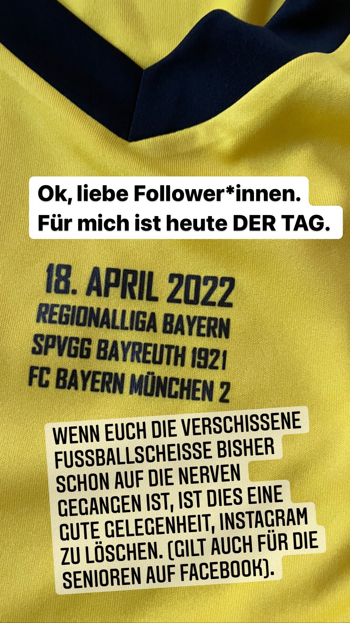 Ok, liebe Follower*innen. Für mich ist heute DER TAG. WENN EUCH DIE VERSCHISSENE FUSSBALLSCHEISSE BISHER SCHON AUF DIE NERVEN GEGANGEN IST, IST DIES EINE GUTE GELEGENHEIT, INSTAGRAM ZU LÖSCHEN....[...]